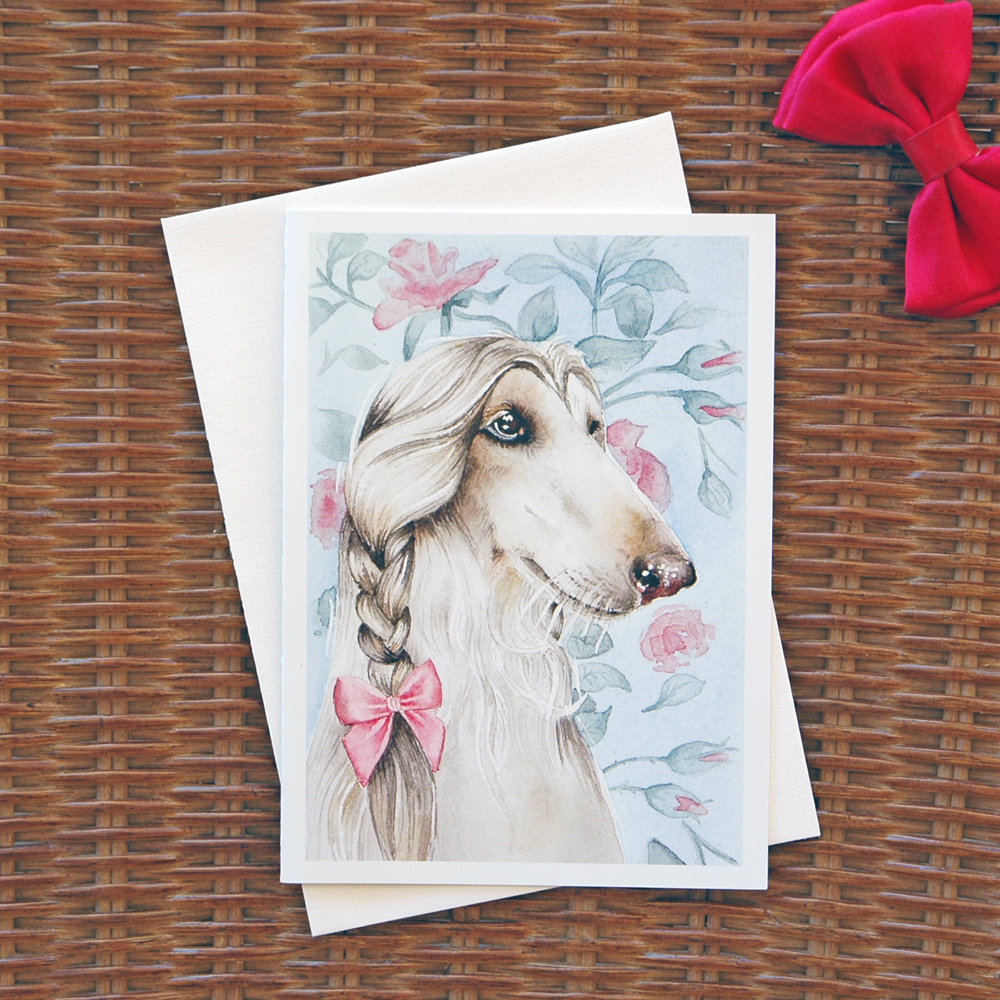 Set Includes: Labrador, Spaniel, Afghan, White Poodle, Basset Hound, and Pointer pup. These cards are perfect for all occasions or can be presented as a thoughtful gift.