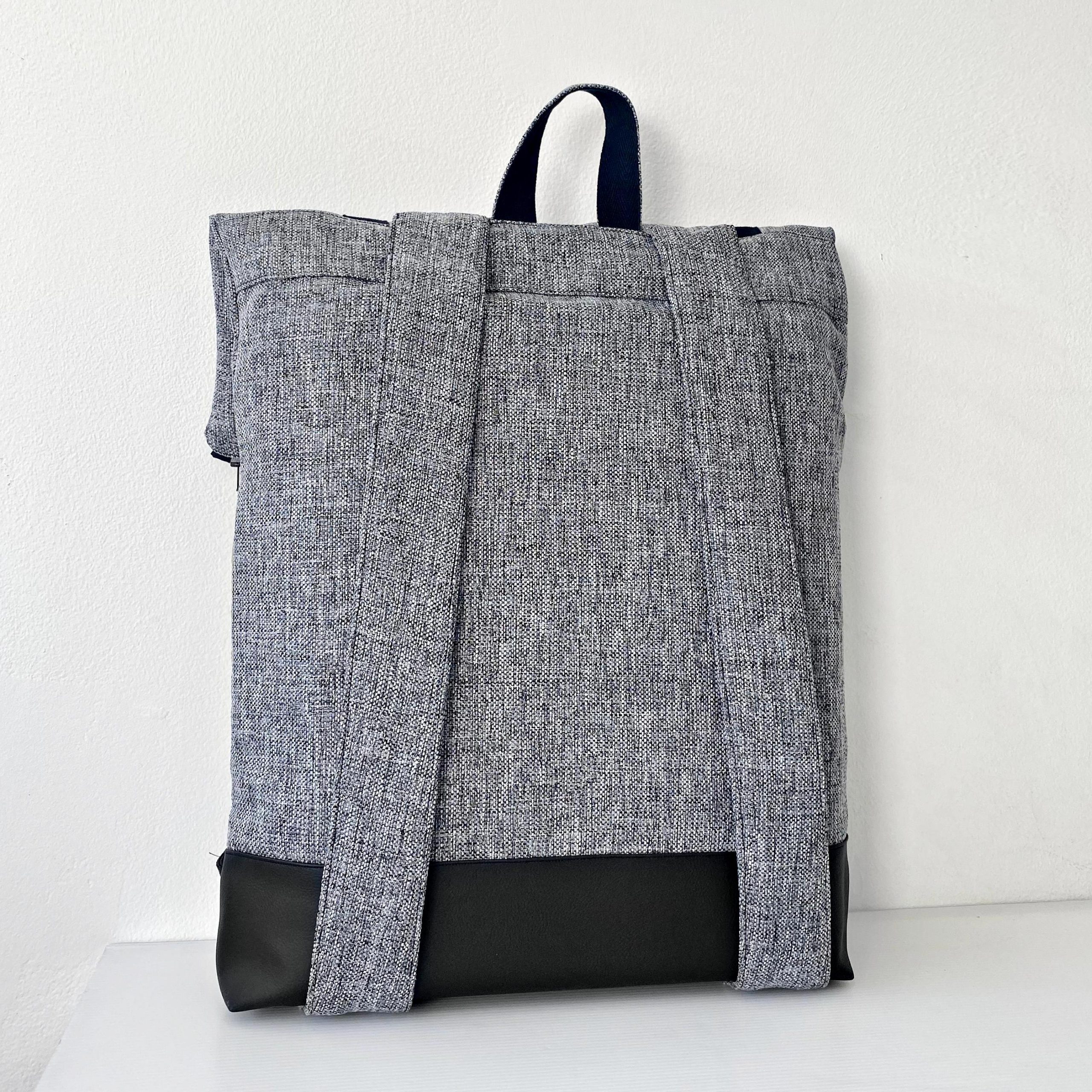 Grey and Green Handmade Rolltop Backpack with Spacious Front Pocket