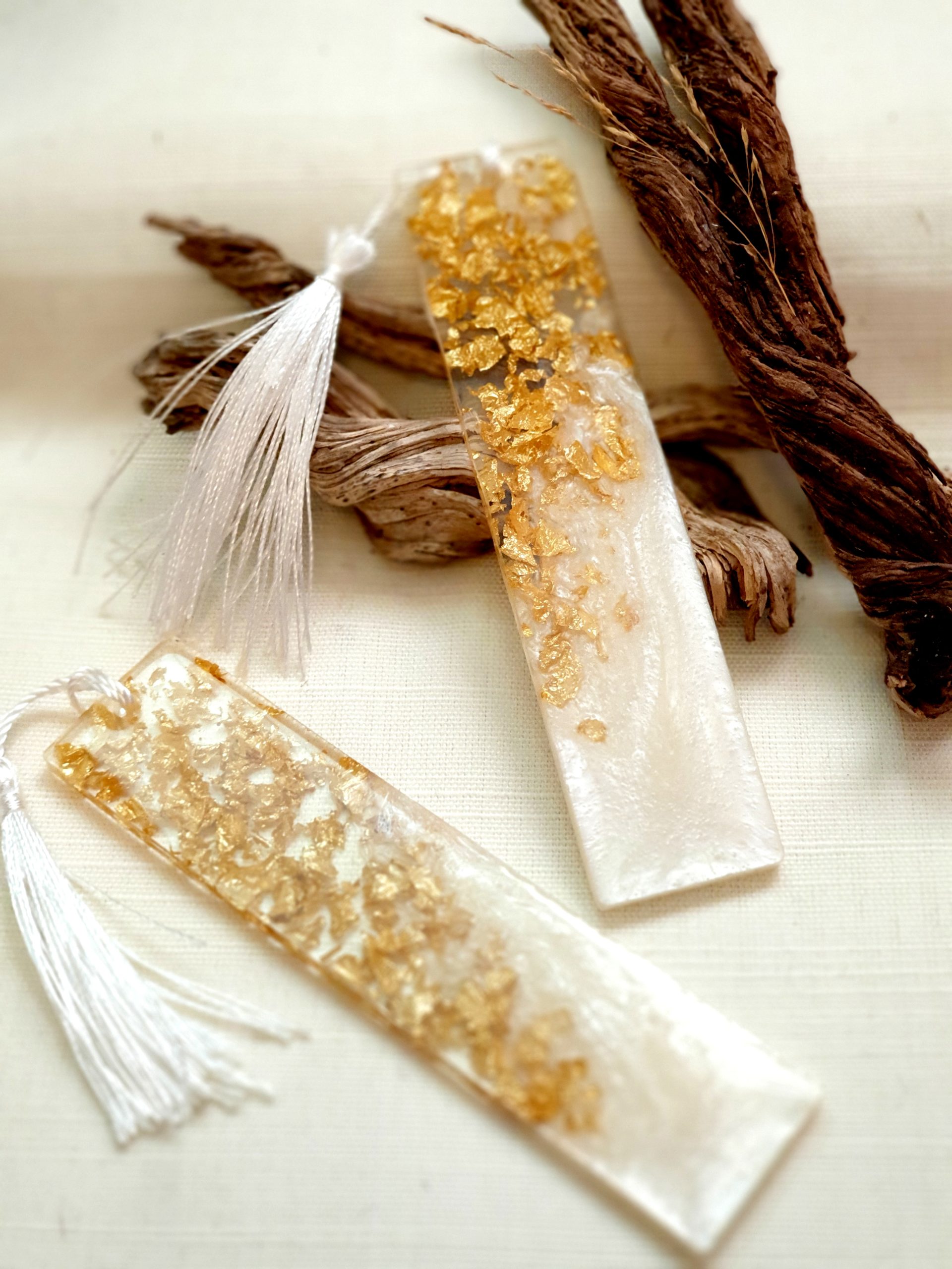 MadeĀ from resin, golden leaves, white pearl color, white tassel