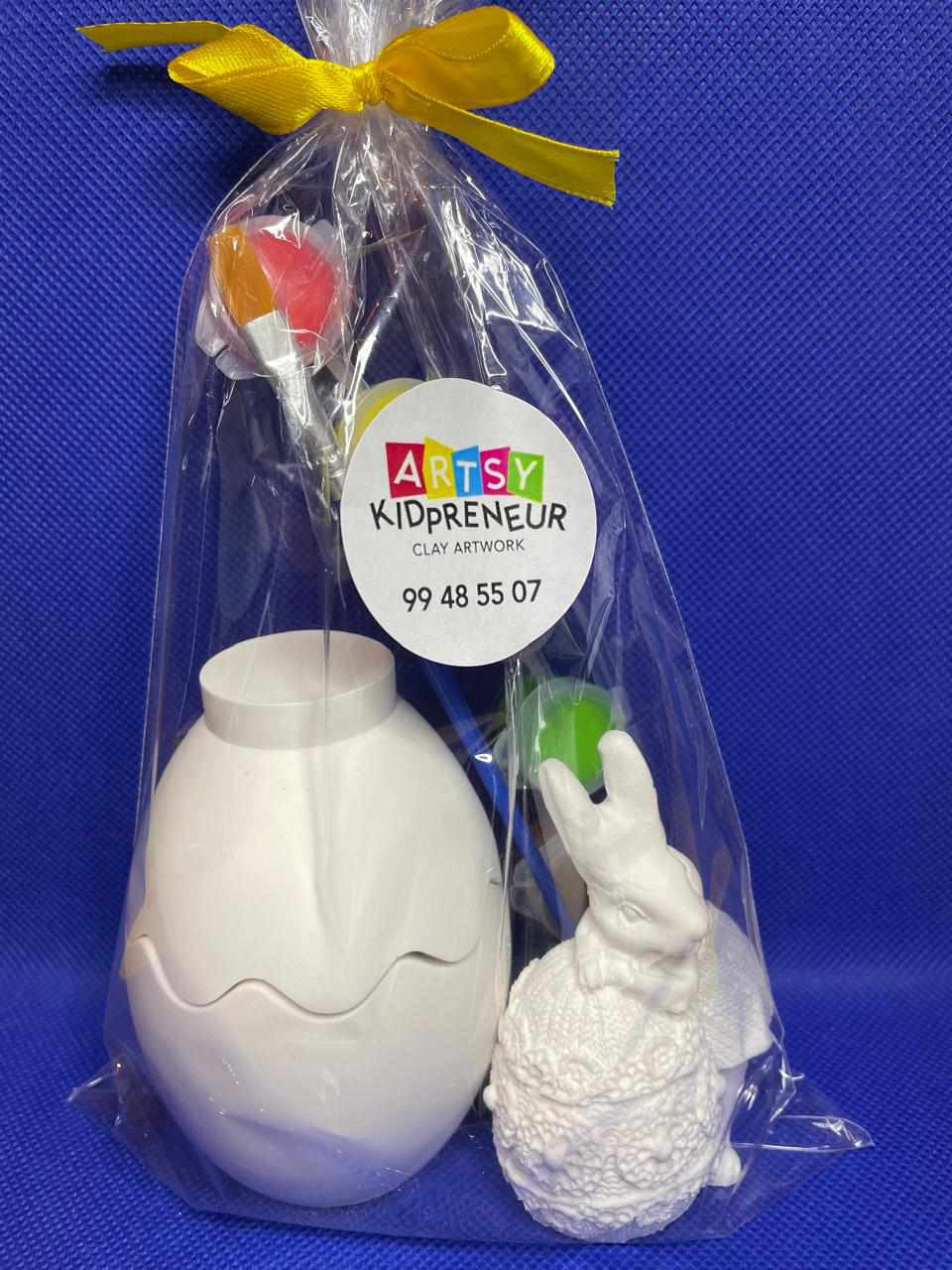 Calling all little artists to get creative and paint this lovely Ceramic Gypsum 3D Cracked Easter Egg and Female Bunny made by Artsy Kidpreneur!