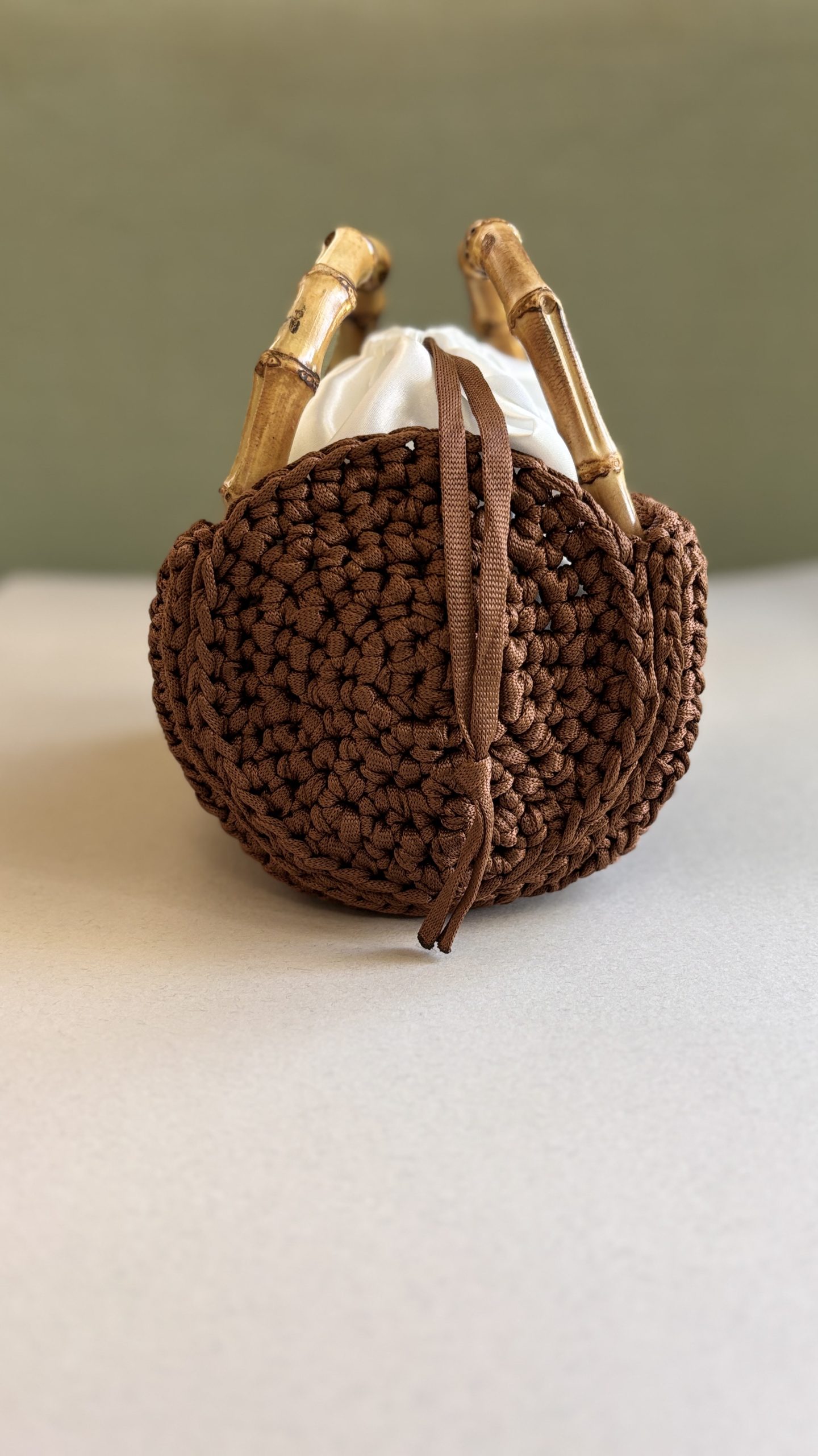Made by our sister brand ΕΛΕΝΑ Handmade Accessories, new season Daphne elevates your style, effortlessly! In a perfect espresso hue, this new must-have bag features elegant bamboo handles and a satin, knotted, drawstring pouch for all your essentials.
