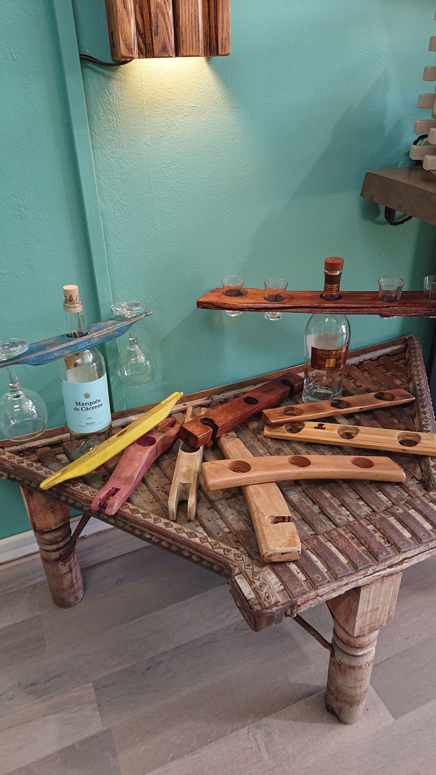 Sit snugly on any standard size bottle of spirits/liquor and holds up to 4 shot glasses, two on either side.