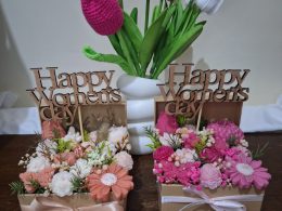 Easter basket with candle flowers & eggs ?