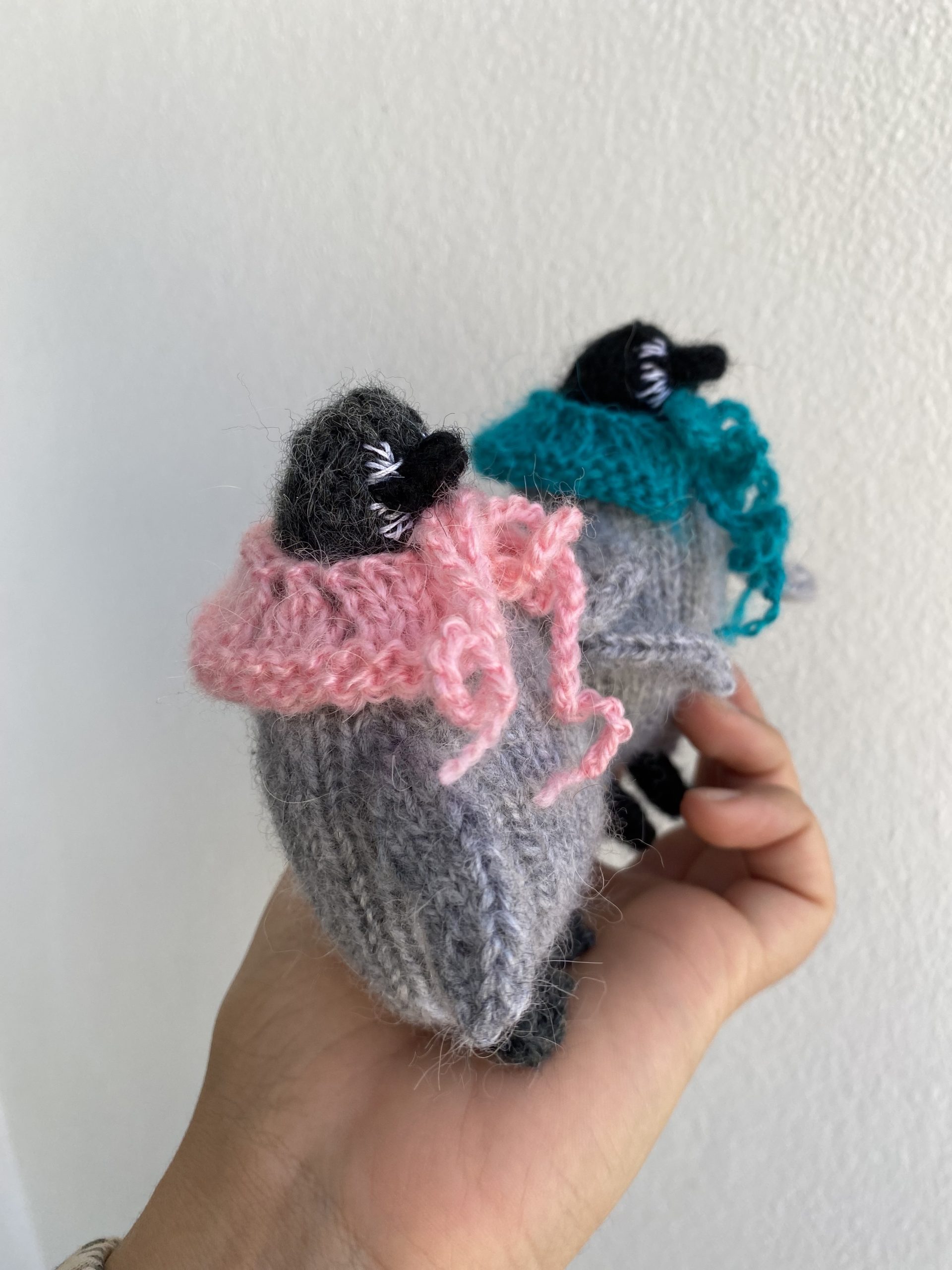 The Penguins are hand-knitted from fluffy and soft wool yarn (40% Angora wool, 60% acrylic). These toys have their own character and special style.