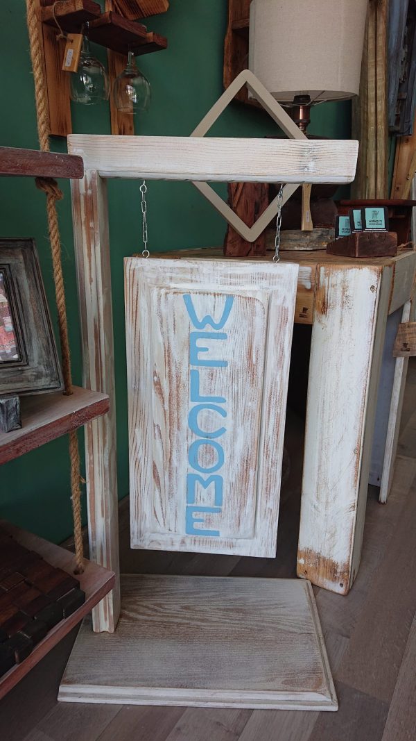 Free-standing, hanging ‘welcome’ patio/entrance way sign.