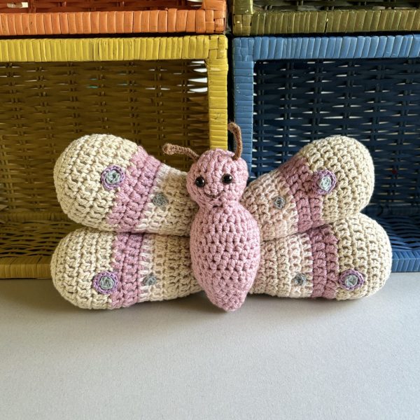 Your child will just love playing with this beautifully crocheted toy butterfly! Its wings are big and soft and move separately so that the butterfly may stand on its own. It is made using the finest quality yarns as well as safety eyes.