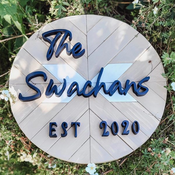 This white accent name sign is the perfect center piece for any home. Or a cute gift for a wedding or a new home. We can also change the colors to fit your color scheme.