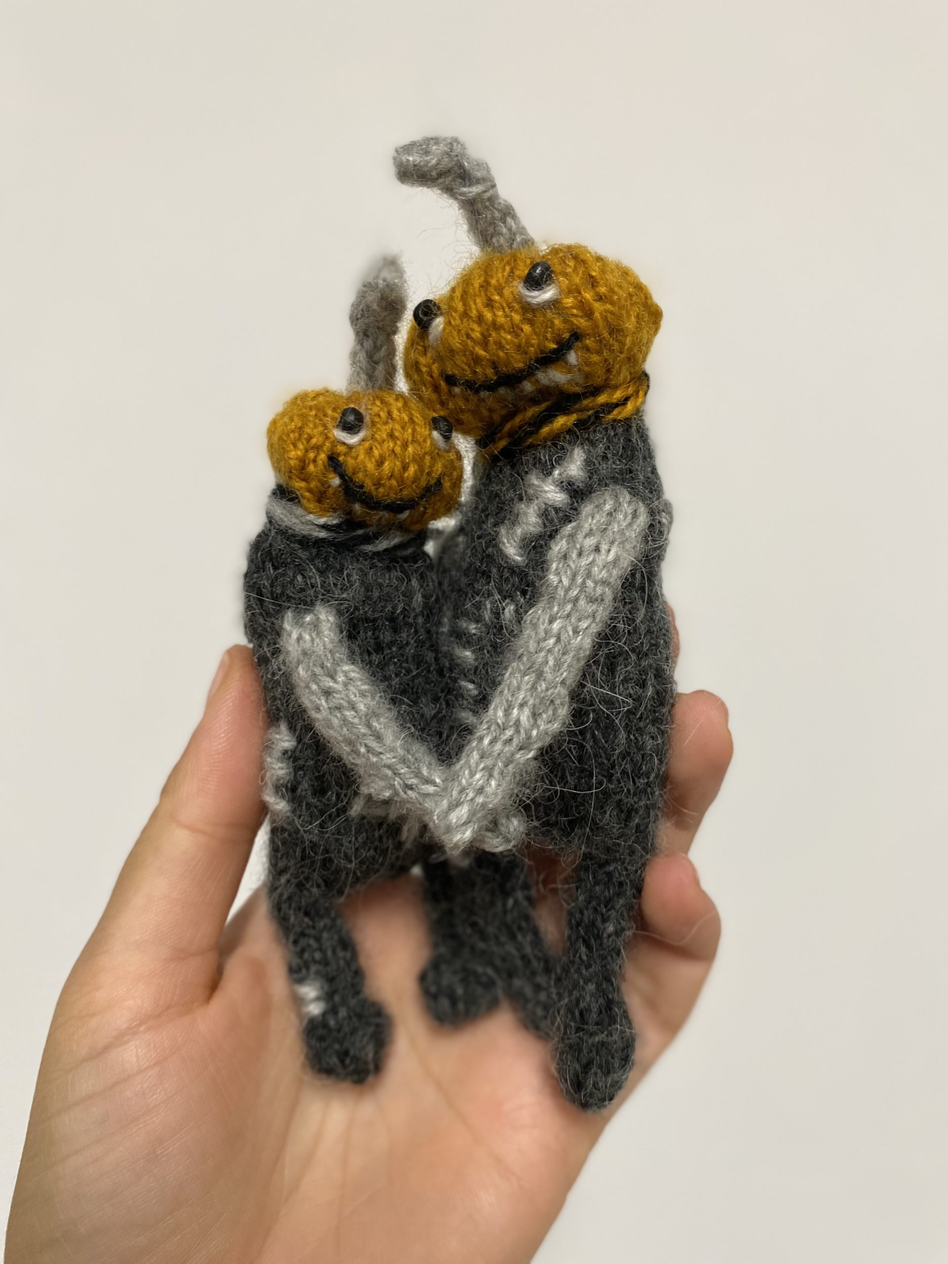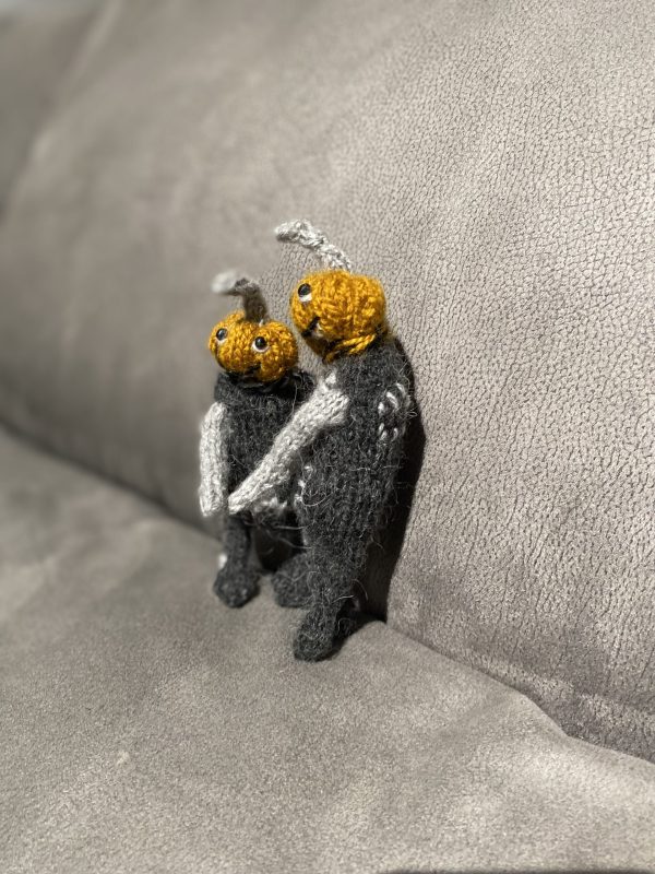 Mr. and Mrs. Pumpkins are hand-knitted from fluffy and soft wool yarn (40% Angora wool, 60% acrylic). These toys have their own character and special style. I think this is the style of cute freaks?