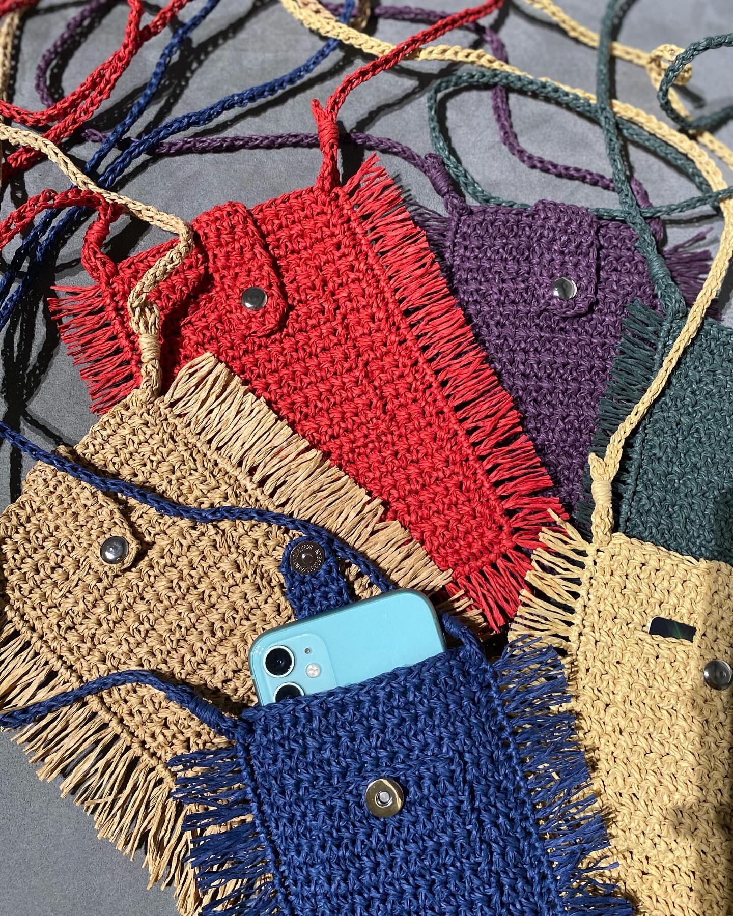 Bags are made of 100% viscose (raffia). The bags fasten with a magnet clasp and don’t have lining.