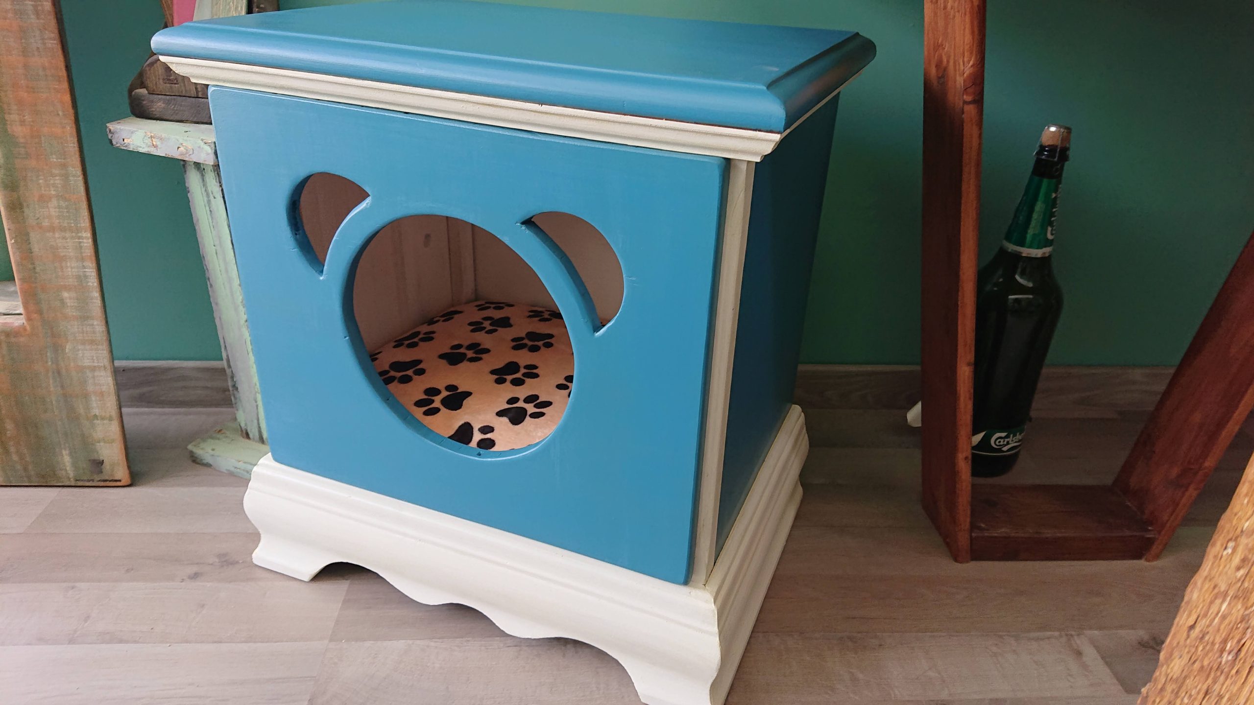 Repurposed bedside drawers cabinet pet bed