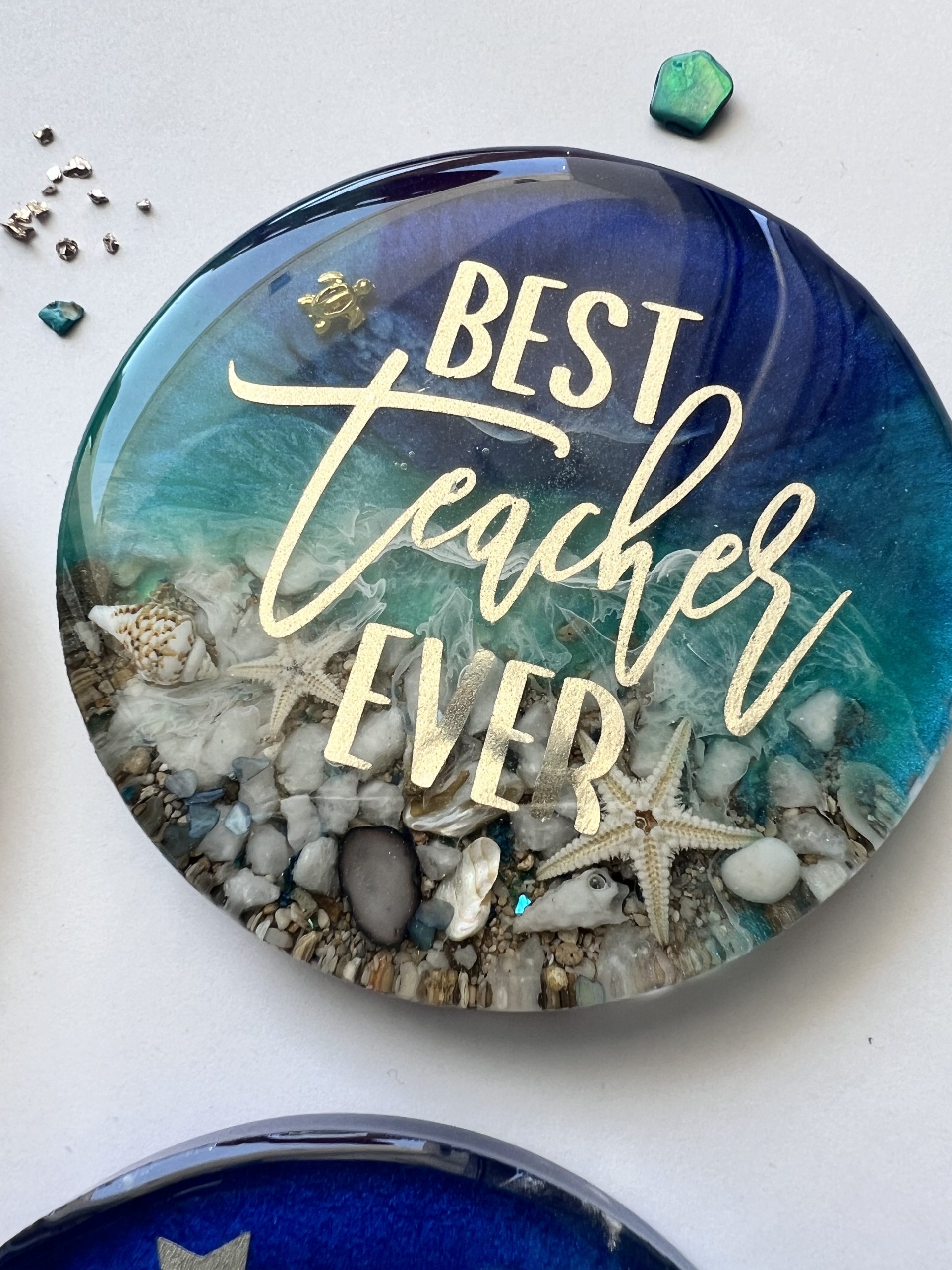 Beautiful ocean inspired teacher gift drink coaster.